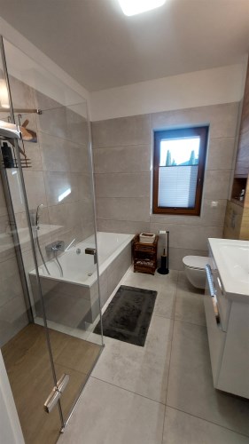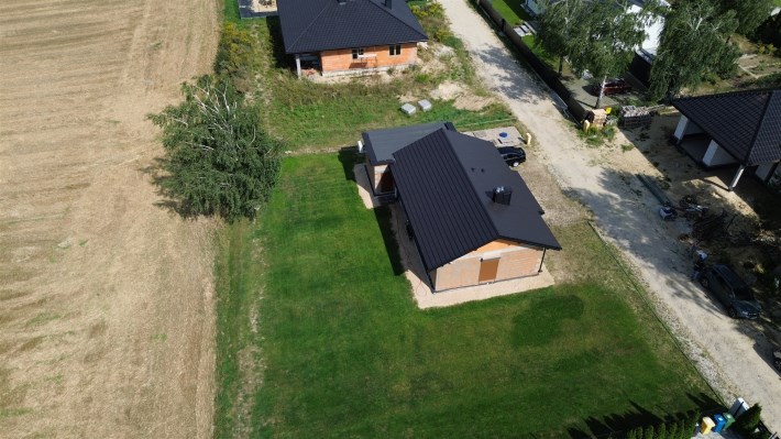 Dom budowany przez osobę prywatną „dla siebie” z bardzo dobrych materiałów min cegła ceramiczna (szlifowana) Porotherm, dach dwuspadowy kryty dachówką ceramiczną, okna trzyszybowe w kolorze orzechowym z roletami. Wysoka jakość wykończenia wewnątrz min: na całości ogrzewanie podłogowe, gres hiszpański na podłodze, tynki knauf + gładź, farby firmy Flugger, drzwi bezprzylgowe, klimatyzacja, ocieplenie poddasza wełną knauf 30cm itp., w łazience włoska glazura, armatura Kludi, kotłownia – piec gazowy dwufunkcyjny.