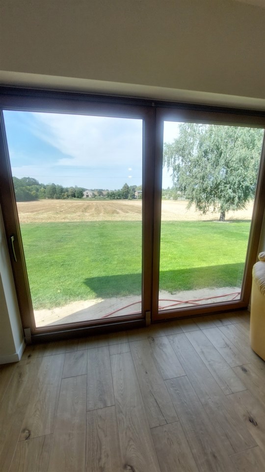 Teren posesji jest wyrównany i przygotowany do aranżacji ogrodu.