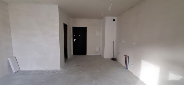 Mieszkanie w tej chwili to otwarta przestrzeń, z której wyodrębniono jedynie łazienkę z toaletą.
