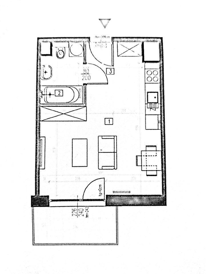 Mieszkanie w tej chwili to otwarta przestrzeń, z której wyodrębniono jedynie łazienkę z toaletą.