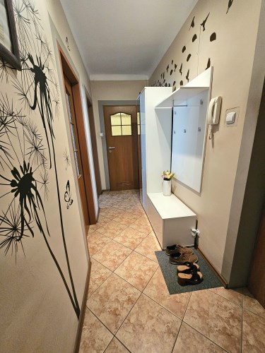 W mieszkaniu okna PCV jedno wymieniono w tym roku, w całym mieszkaniu w pokojach panele, zostały także zrobione gładzie. Łazienka do remontu, a reszta pomieszczeń do odświeżenia. Meble kuchenne w dobrym stanie. Blok z cegły wybudowany w latach 80-tych, mieszkanie jednostronne, środkowe. Do mieszkania przynależy piwnica. Kuchnia wyposażona w meble pod wymiar, gaz z butli, podzielniki ciepła.