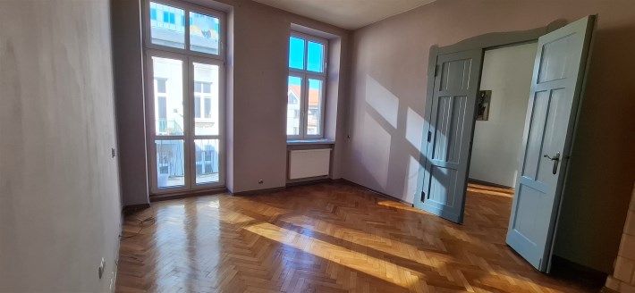 49,80 m kw., położone jest na trzecim piętrze w oficynie kamienicy. Zarówno kamienica jak i samo mieszkanie znajdują się w dobrej kondycji technicznej.