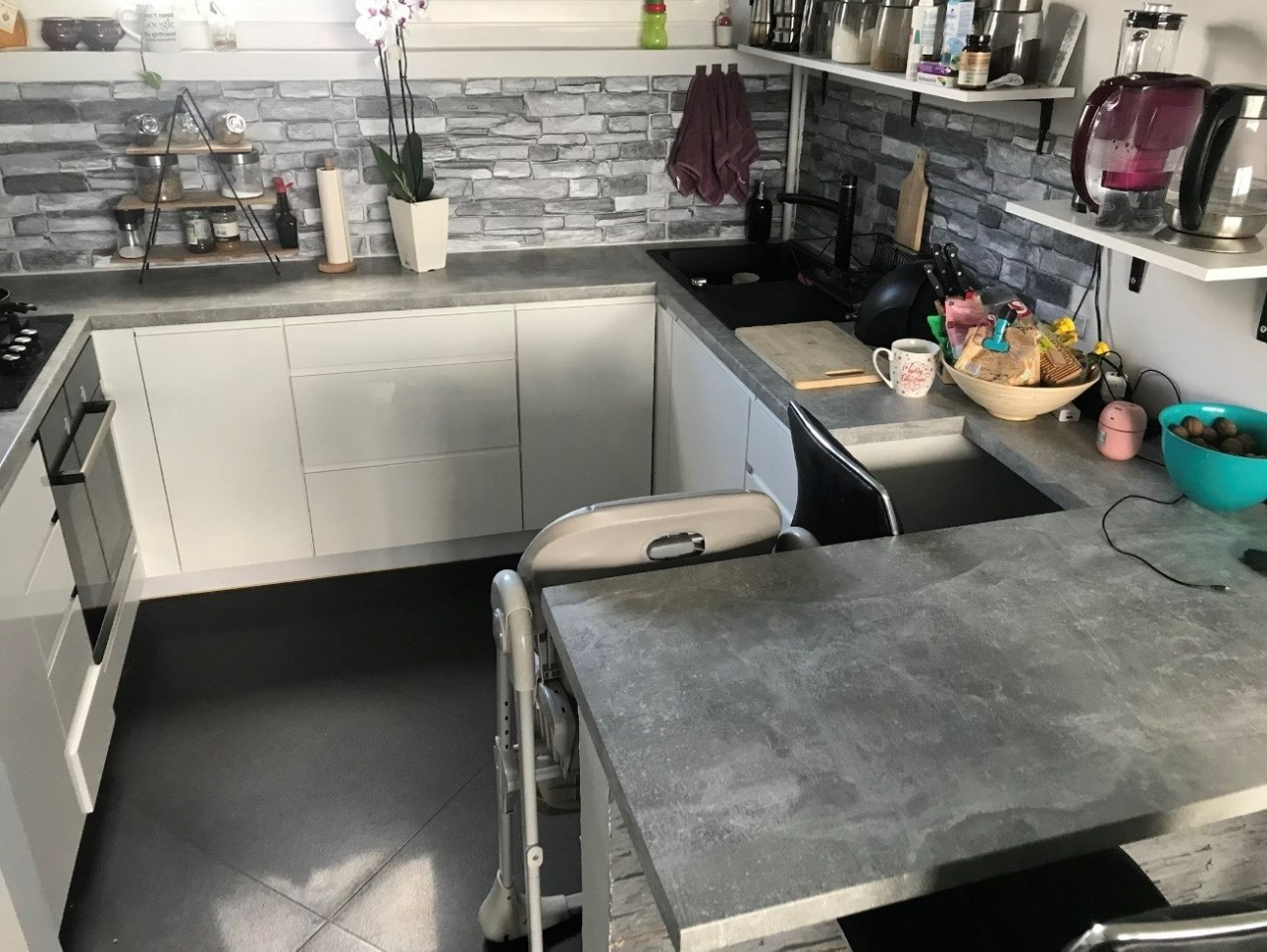 Salon połączony z kuchnią - meble kuchenne w zabudowie
