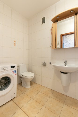 Wyposażenie łazienki lustro, umywalka, pralka, wanna, WC