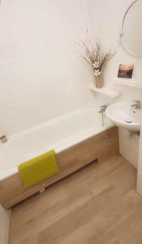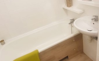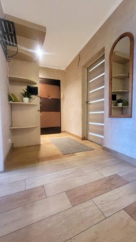 • W pokojach na podłodze wykładzina parkiet, w  łazience, wc i przedpokoju terakota, w kuchni panele.
