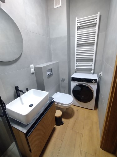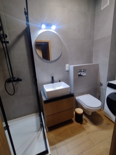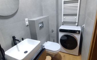 - łazienki z toaletą (kabina prysznicowa, pralka),