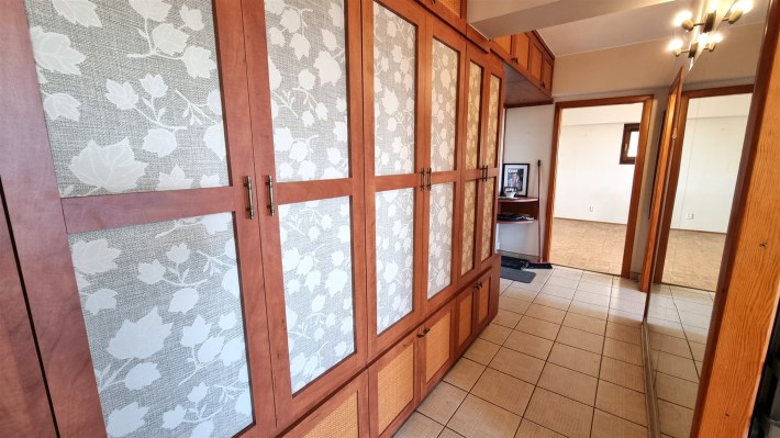 HOLL: podłoga terakota, ściany gładzie gipsowe, jedna ściana z luster, szafa garderoba w zabudowie, szafka na buty i wieszak - w cenie