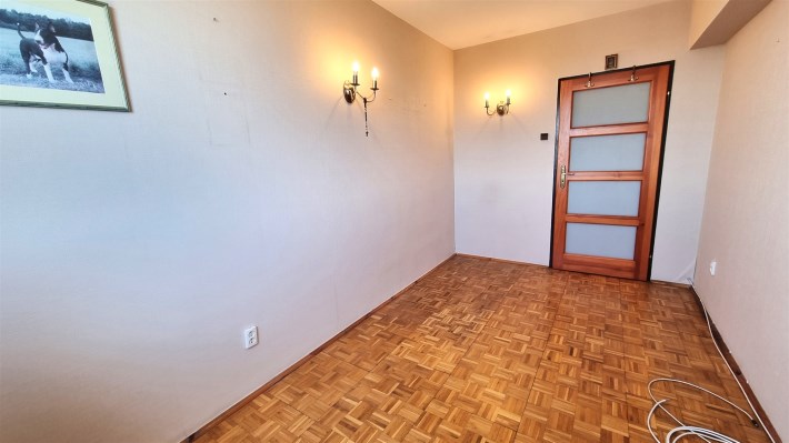 II POKÓJ : podłoga mozaika - parkiet, ściany gładzie gipsowe, BALKON z pięknym widokiem na panoramę miasta, okna nowego typu - drewniane z roletami okiennymi, nowoczesne drzwi drewniane z przeszkleniami
