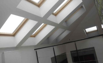 2 sypialnie na antresoli, otwarte na ścianę z oknami, oddzielone barierkami, w głównej okna dachowe,